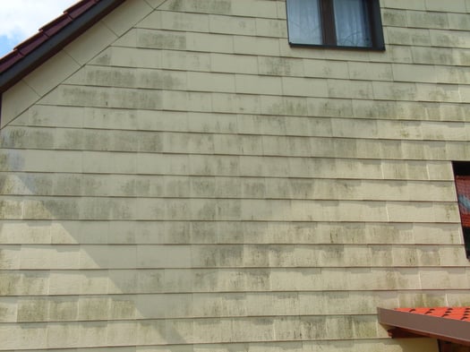 Von Moos und Algen befallene Fassade mit einer speziellen Reinigungslösung säubern.