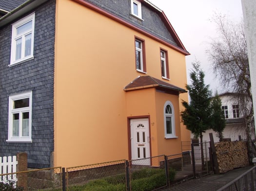 Die Fassade wurde mit Silikonharzputz versehen und unter Beratung mit dem Bauherrn in einem Orangeton gestrichen.